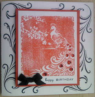 The stamp is Hero Arts Peacock (CG184) stamped here in Barn Door Distress Ink.